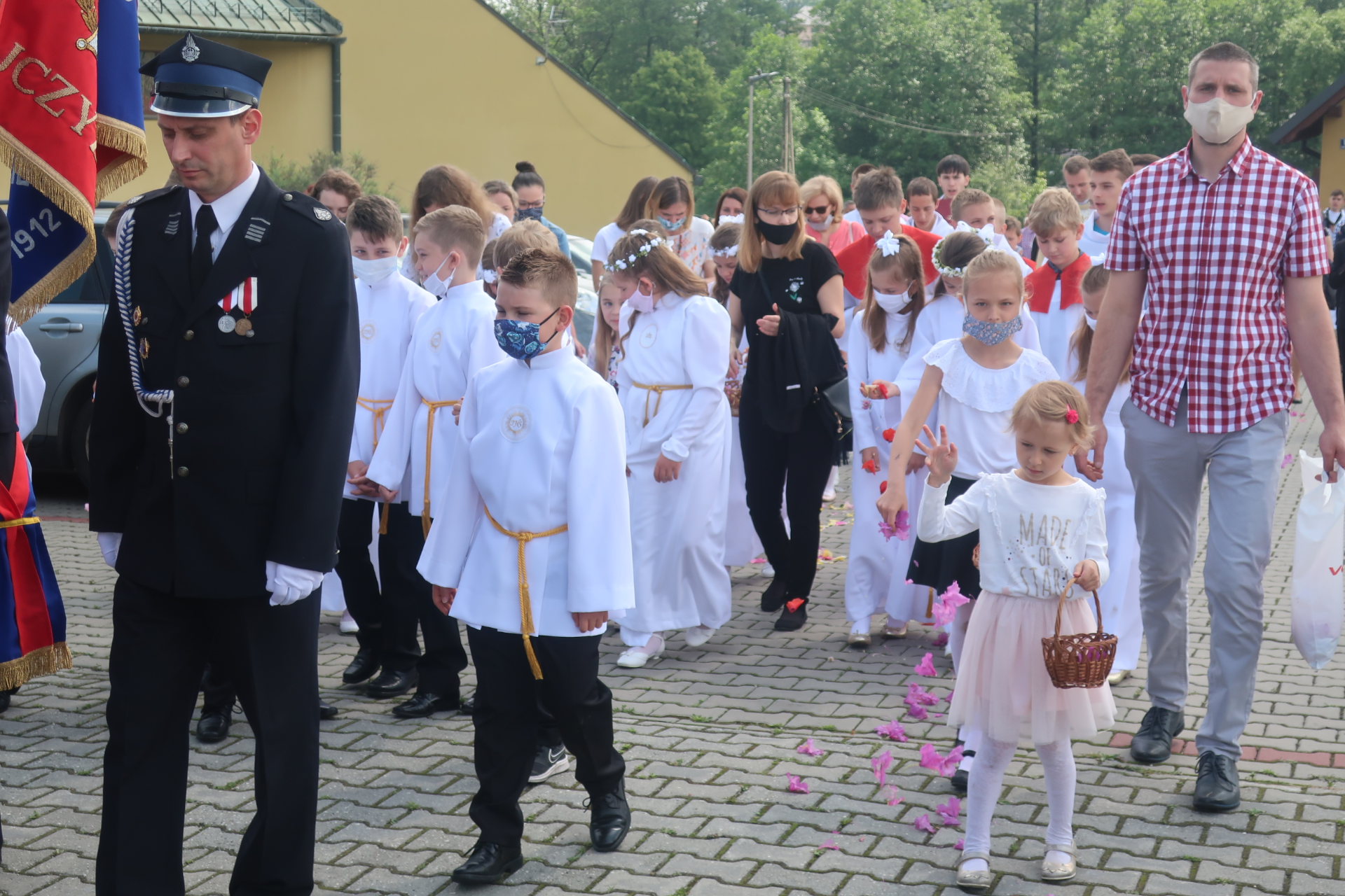Dziś, 11 czerwca w Kościele Katolickim obchodzimy Uroczystość Najświętszego Ciała i Krwi Chrystusa. Główne obchody rozpoczęły się Mszą św. o godzinie 9.30 w kościele Miłosierdzia Bożego. Kazanie na temat święta oraz istocie Eucharystii w rzeczywistości duchowej wygłosił ks. proboszcz - Stanisław Furczoń. Z uwagi na zagrożenie epidemiologiczne uroczystości przybrały odmienny niż dotychczas charakter. Wierni nie wyszli na ulice swej parafii, lecz wzięli udział w procesji do czterech ołtarzy, które rozstawione były w obrębie posesji przylegającej do świątyni. Niezmienne zaś pozostały: warta strażaków z OSP, udział dzieci pierwszokomunijnych, czy sypanie kwiatów przez dziewczynki. Uroczystości uświetnił również występ młodzieżowego zespołu parafialnego Aeternum. Na sam koniec uroczystości odśpiewaliśmy hymn Te Deum laudamus.